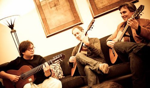 Yamandu is one of my favourite guitarists...anywhere...anytime..a true master and innovater of the styles created by Baden Powell and Raphael Rabello... had the extreme luck of playing a set with him at the last Adelaide guitar festival [with the guitar trio i play with]...this year we get Jason!! 4 days of jamming....an unforgetable highlight in my life...amazed i remember it with all the beer consumed... he also jammed with some flamenco's till the wee hours...his knowledge of music is mindblowing the you tube link is his last night in australia at a gathering with one of australia's finest guitarists..Doug de vries..also a monster player... the pitcure is a happy snap on the same night having a jam... the guy never seems to sleep seen playing till 7am...up at 10am...always a guitar [or beer] in his hand.. thanks for the post..