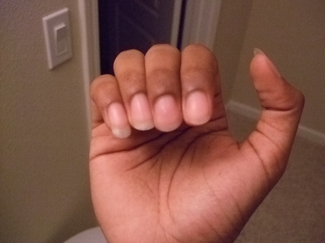 You can see my pinky nail is much flatter. All my nails are like that normally, but after I put the glue on and it dries, my nails curve. Can't say why exactly, but they just do. I dont' do anything, just a coat or 2 of Krazy glue type stuff, cyanoacrelate, on top and that is it.
